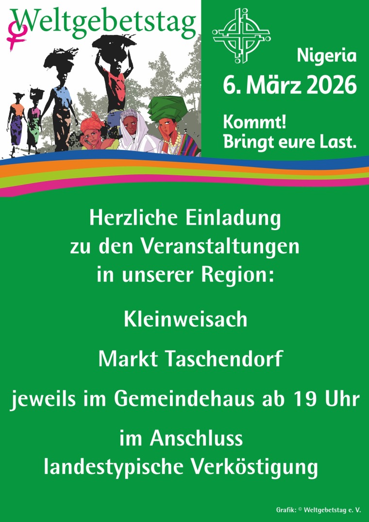 Frauen der Kirchen-gemeinden Markt Ta-schendorf-Gleißenberg und Kleinweisach laden am 6. März um 1900 Uhr
